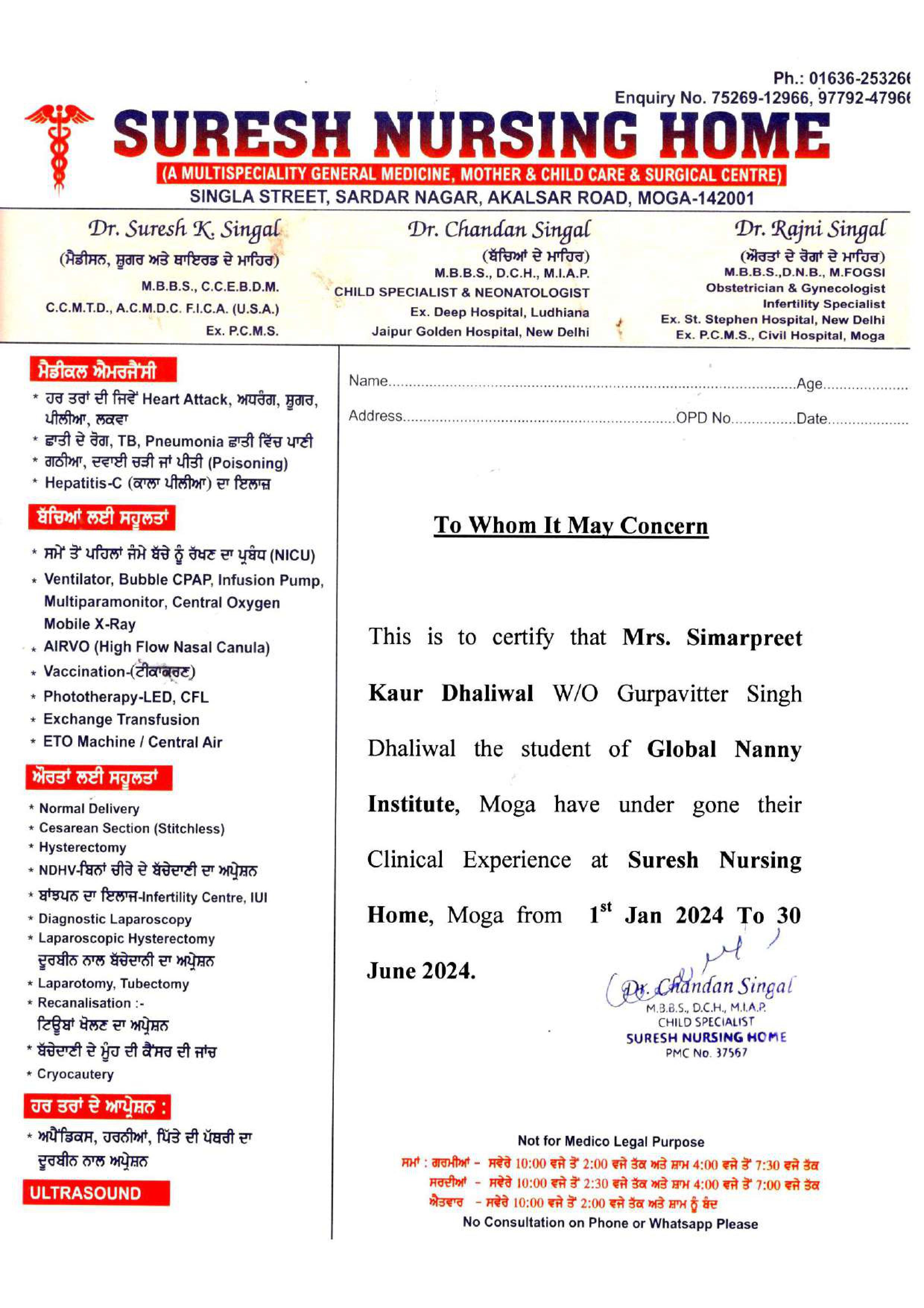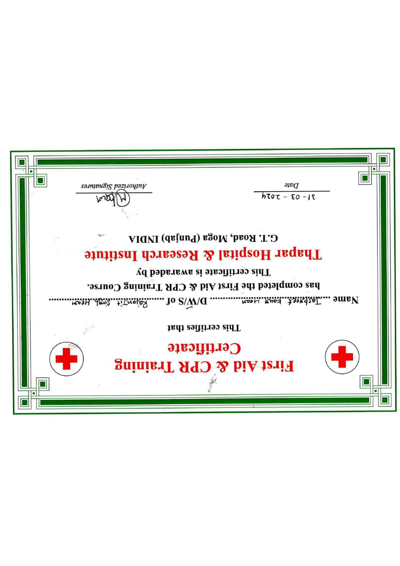 Sharanpreet Kaur D/O Satpal Singh (Certification Date : 08-07-2024)