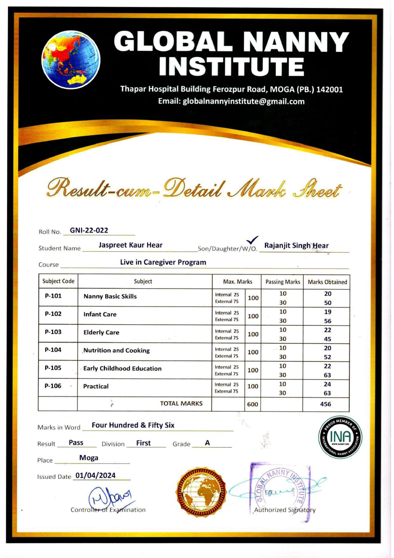 Jaspreet Kaur Hear (Certification Date : 01-04-2024)
