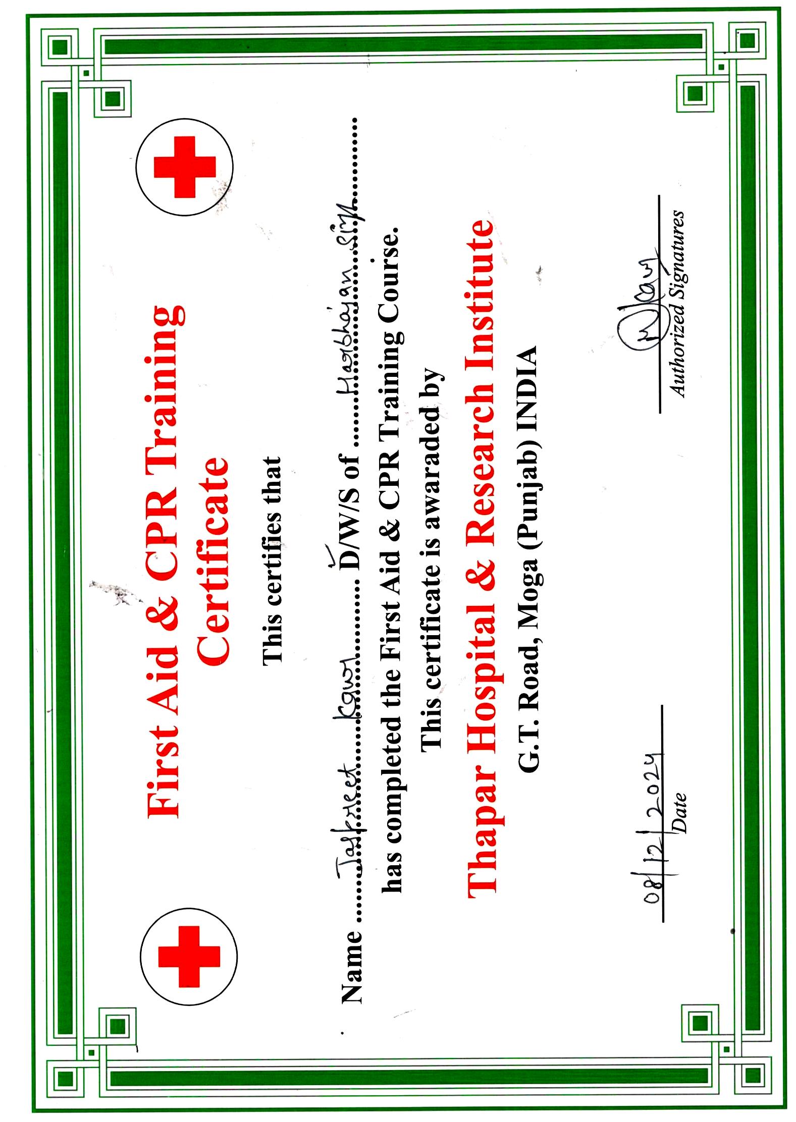 Dalveer Kaur W/O Zorawar (Certification Date : 04-07-2025)