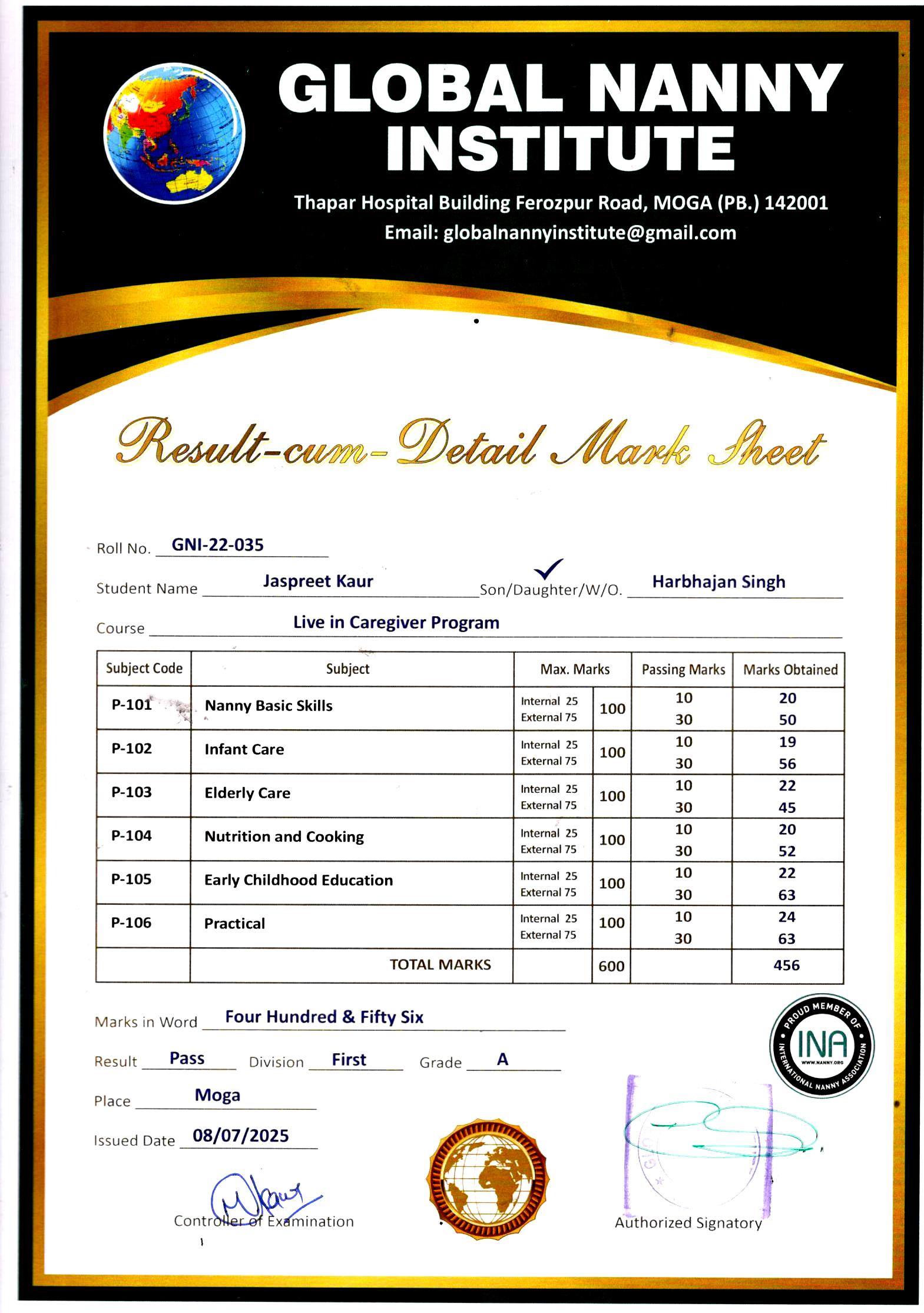 JASPREET KAUR HARBHJAN SINGH (Certification Date : 08-07-2025)