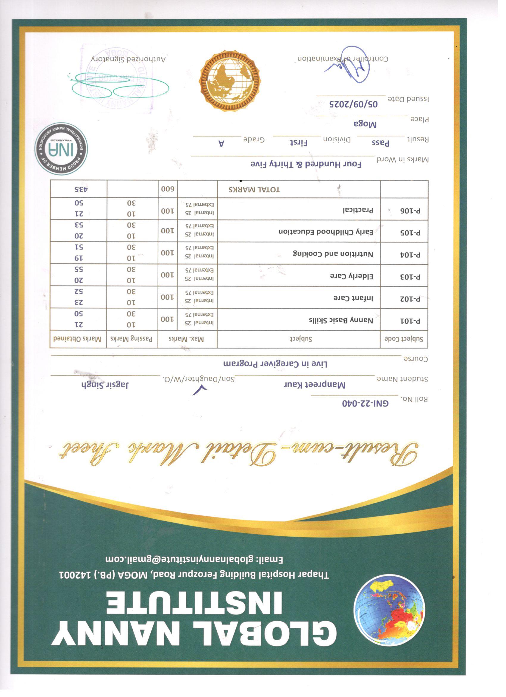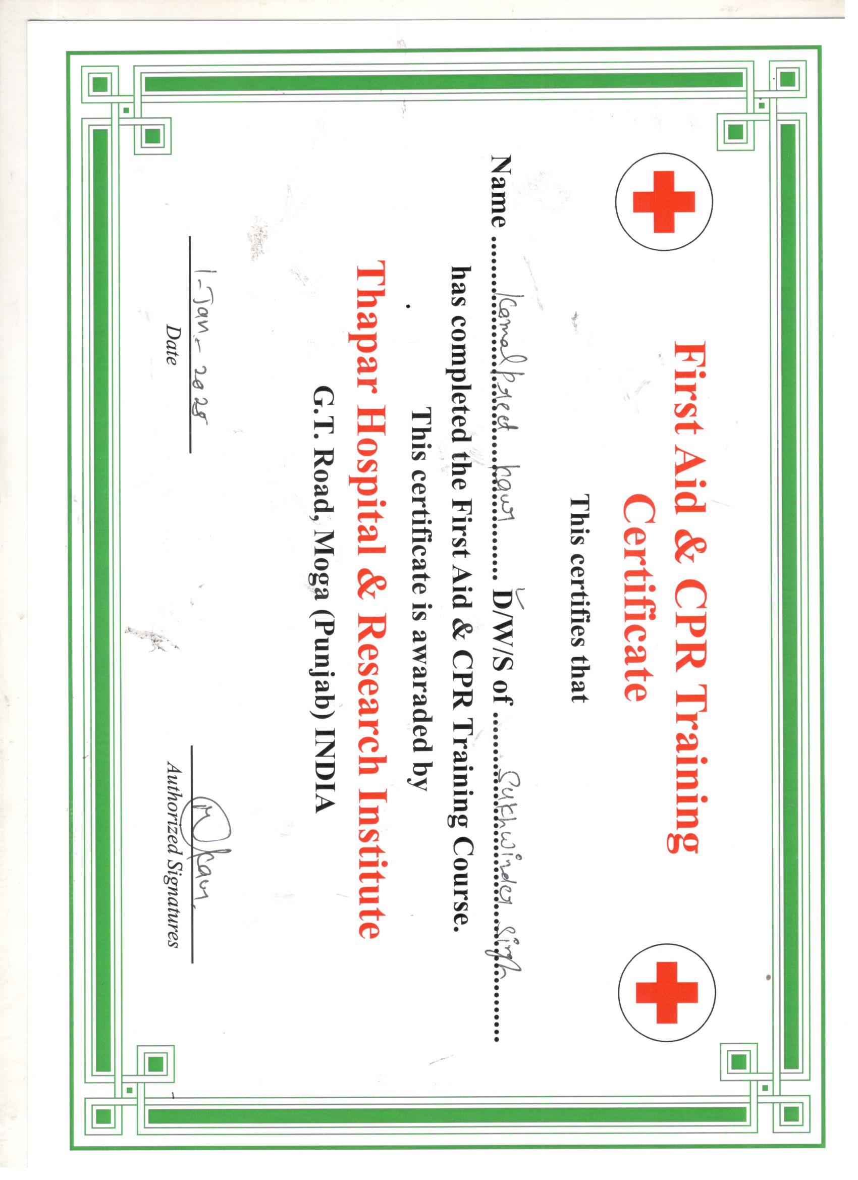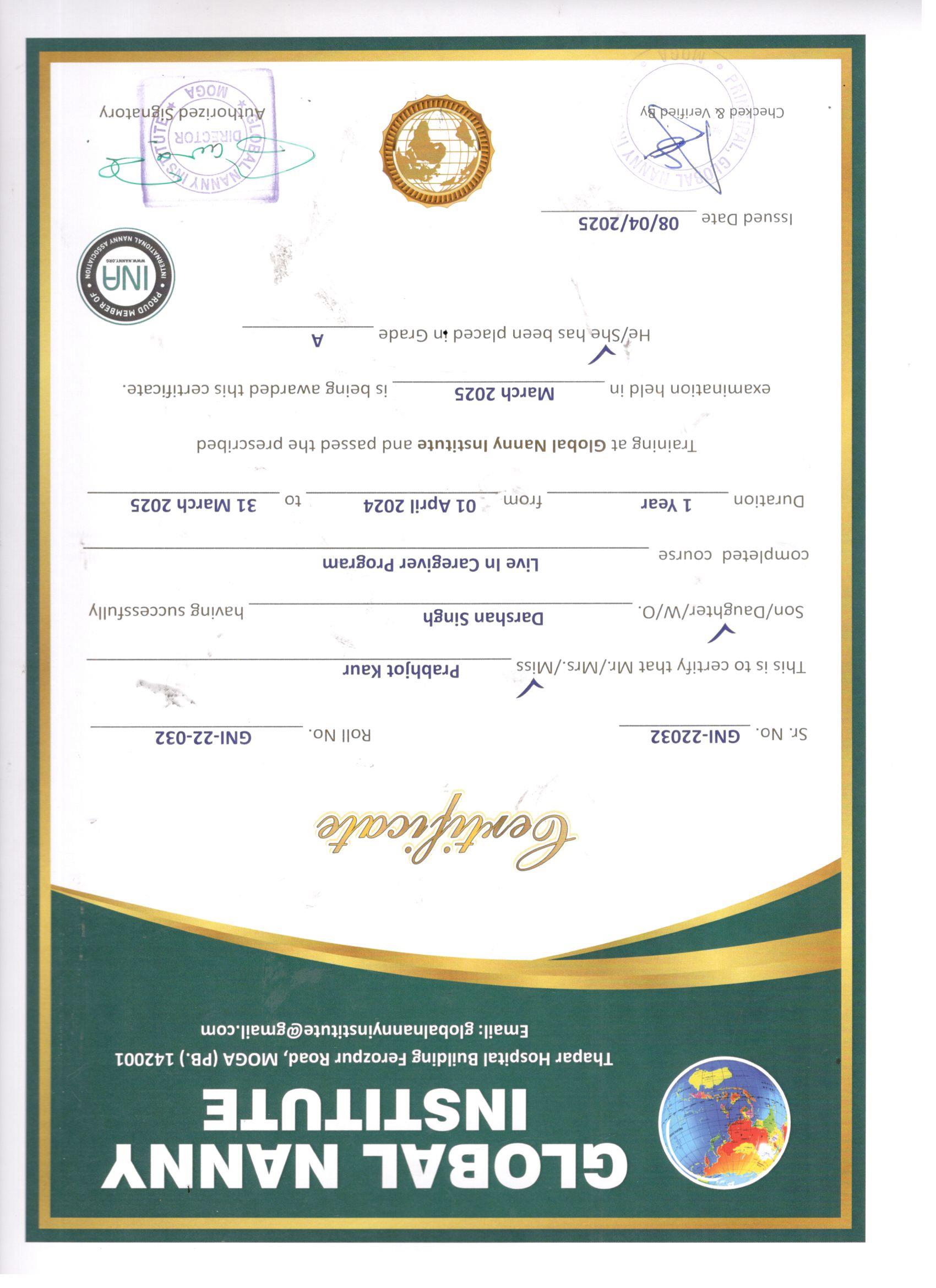 Prabhjot Kaur D/O Darshan Singh (Certification Date : 08-04-2025)