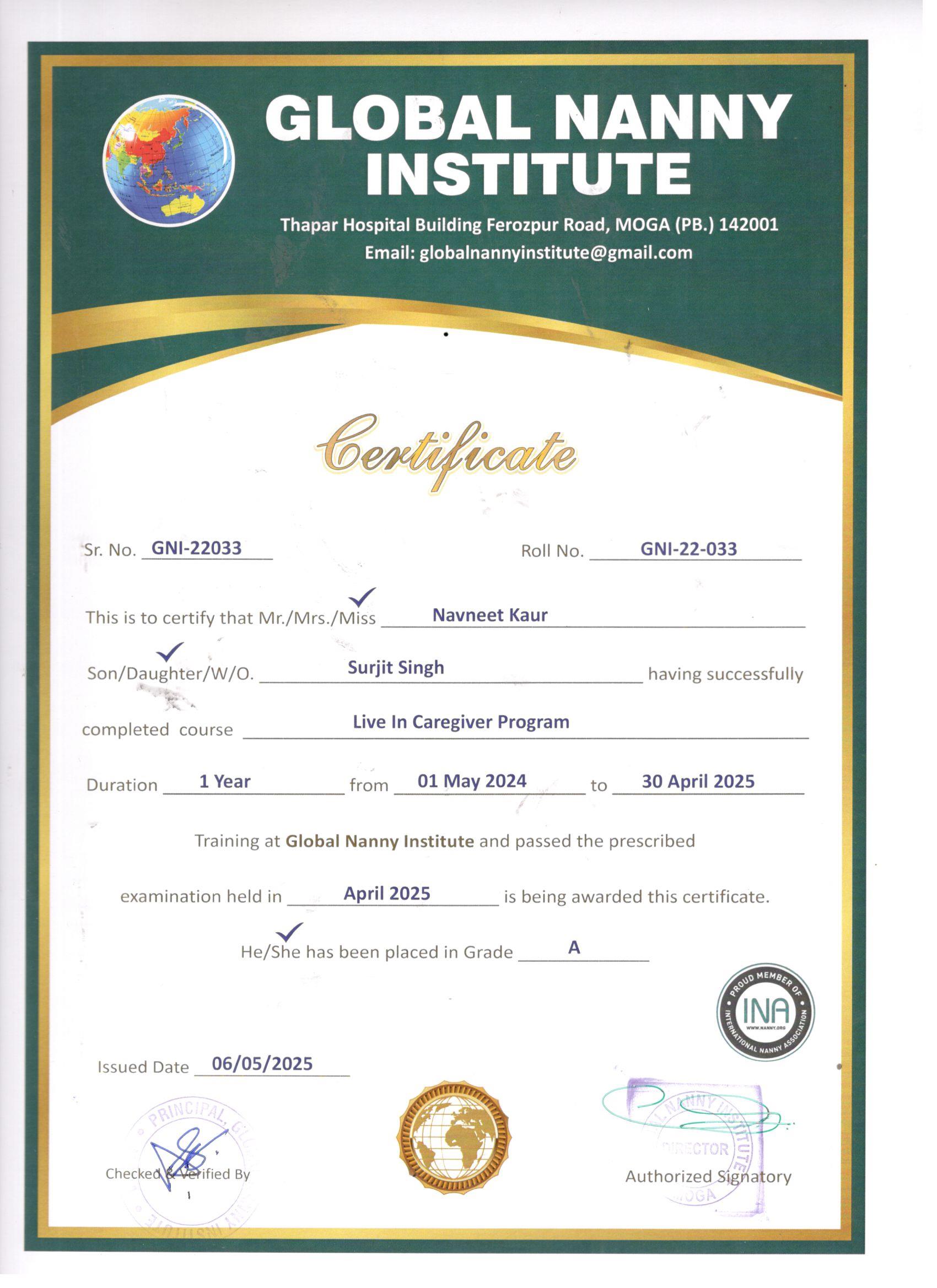 Navneet Kaur D/O Surjit Singh (Certification Date : 06-05-2025)