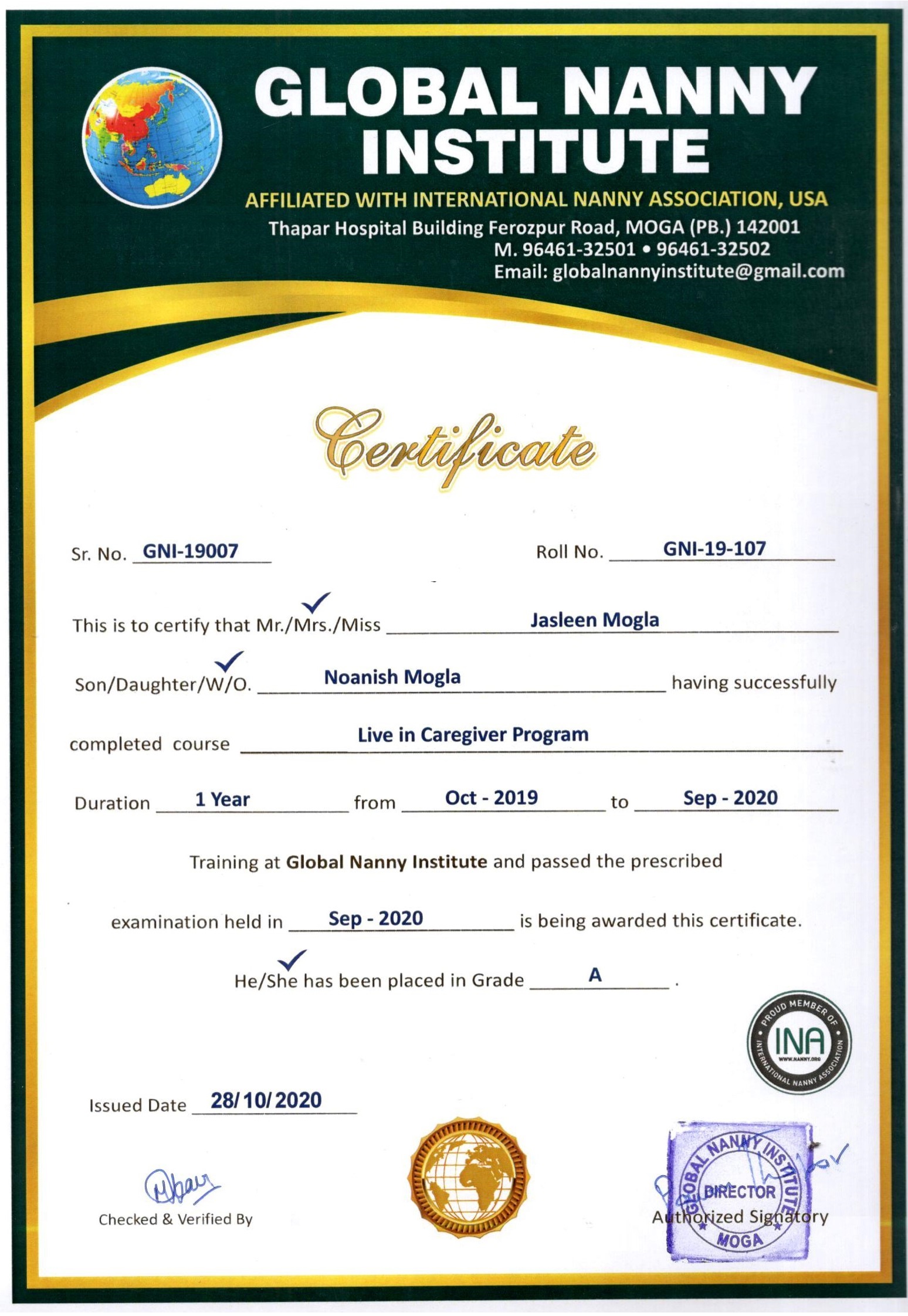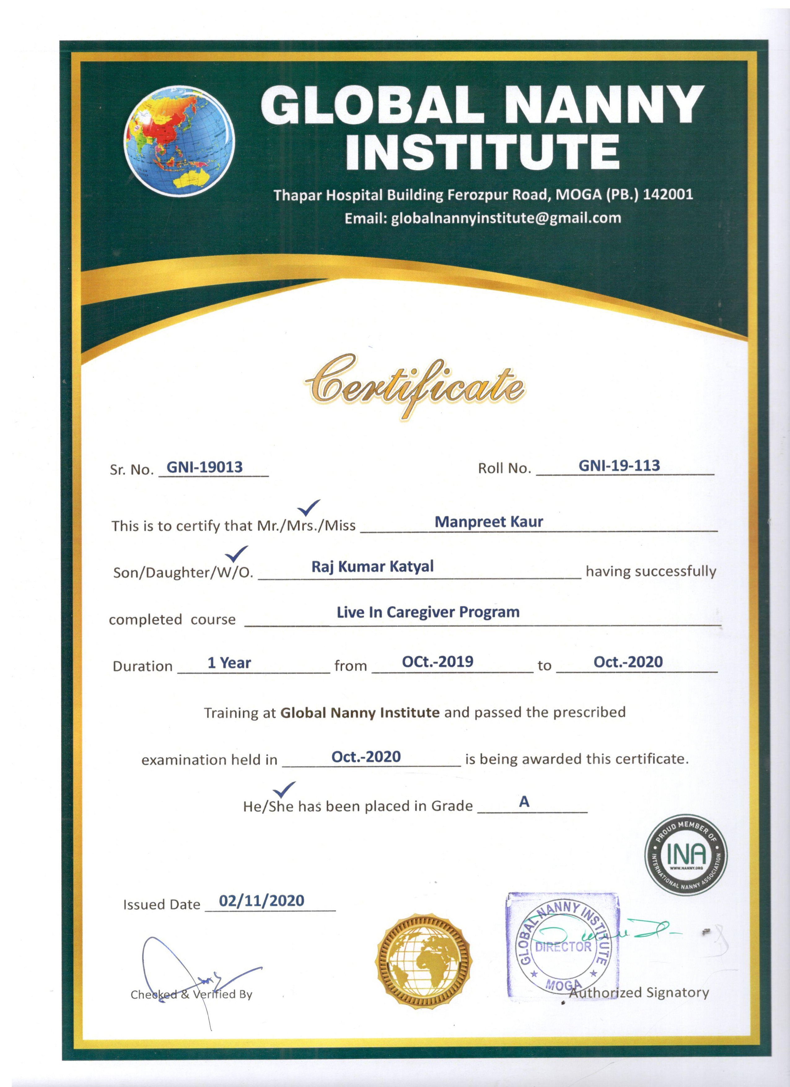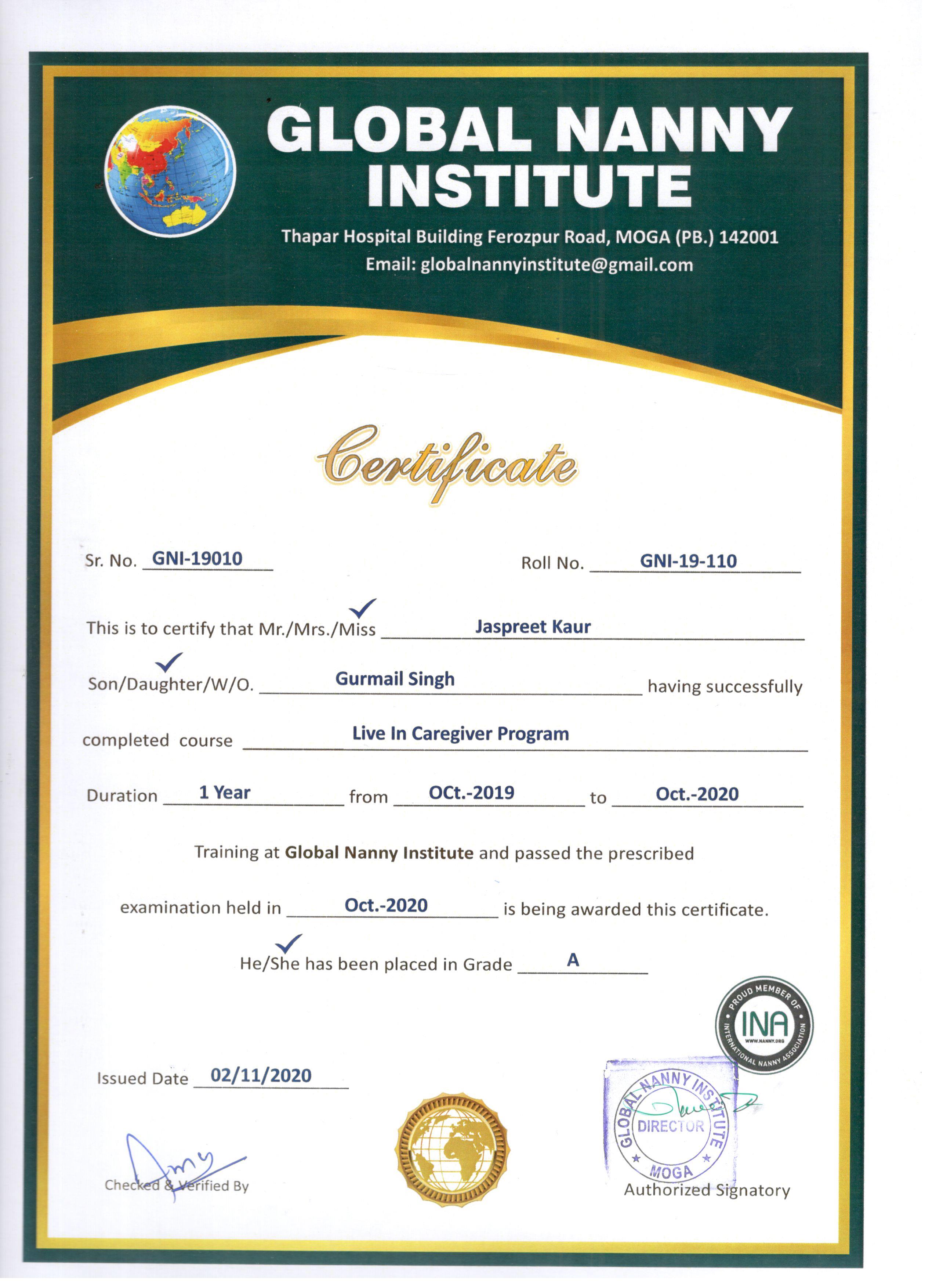 Prabhjot Kaur (Certification Date : 02-11-2020)