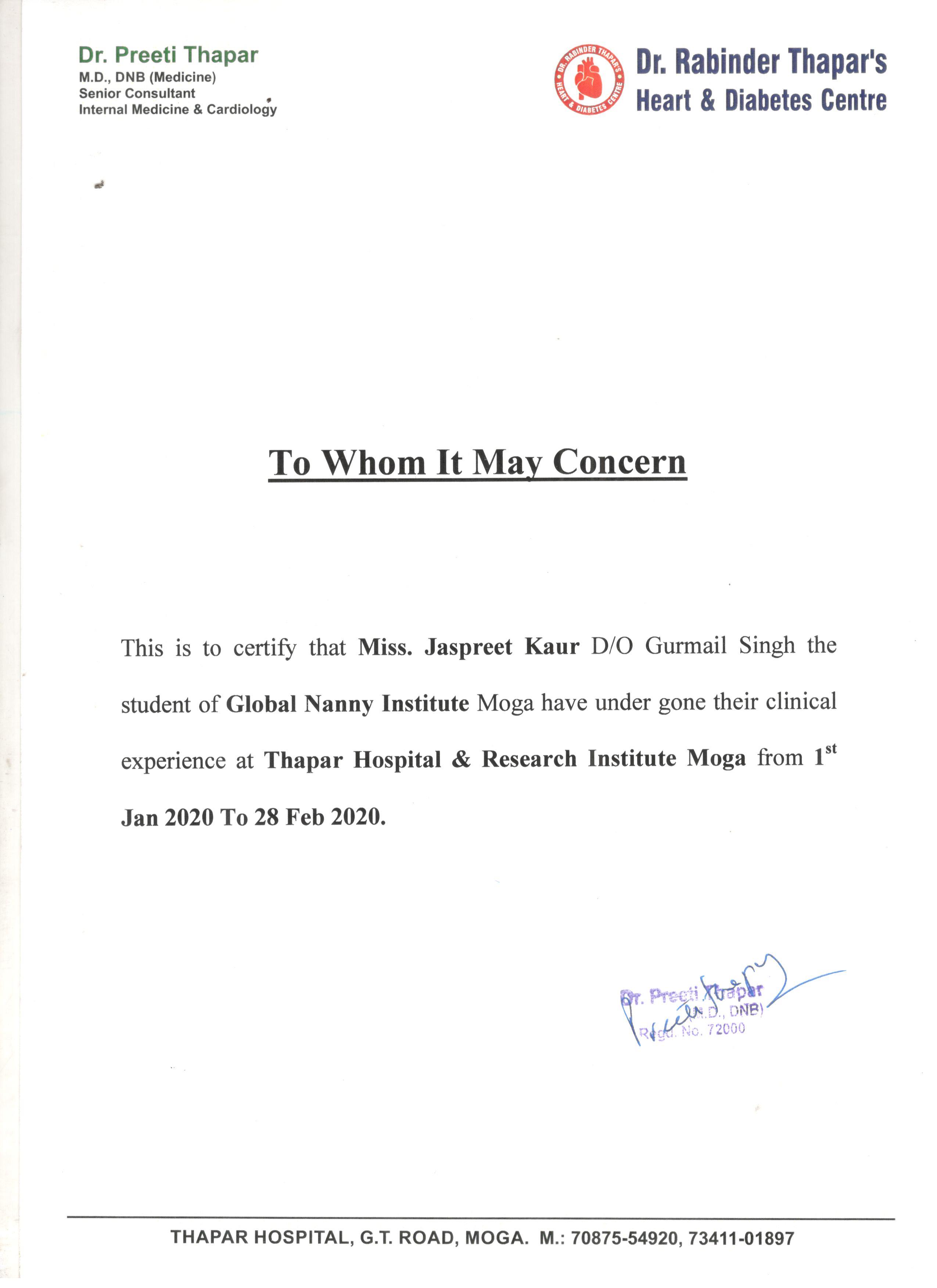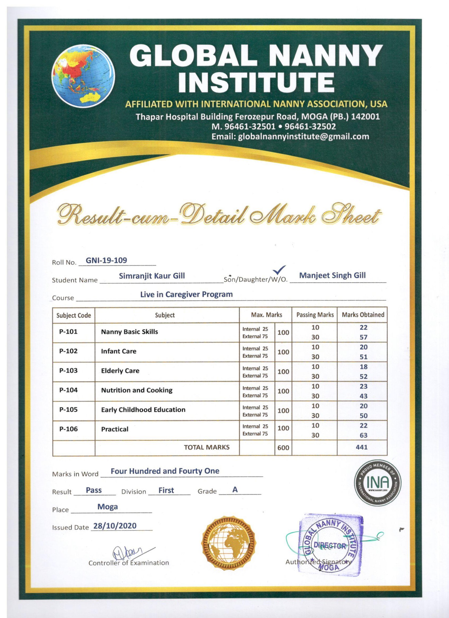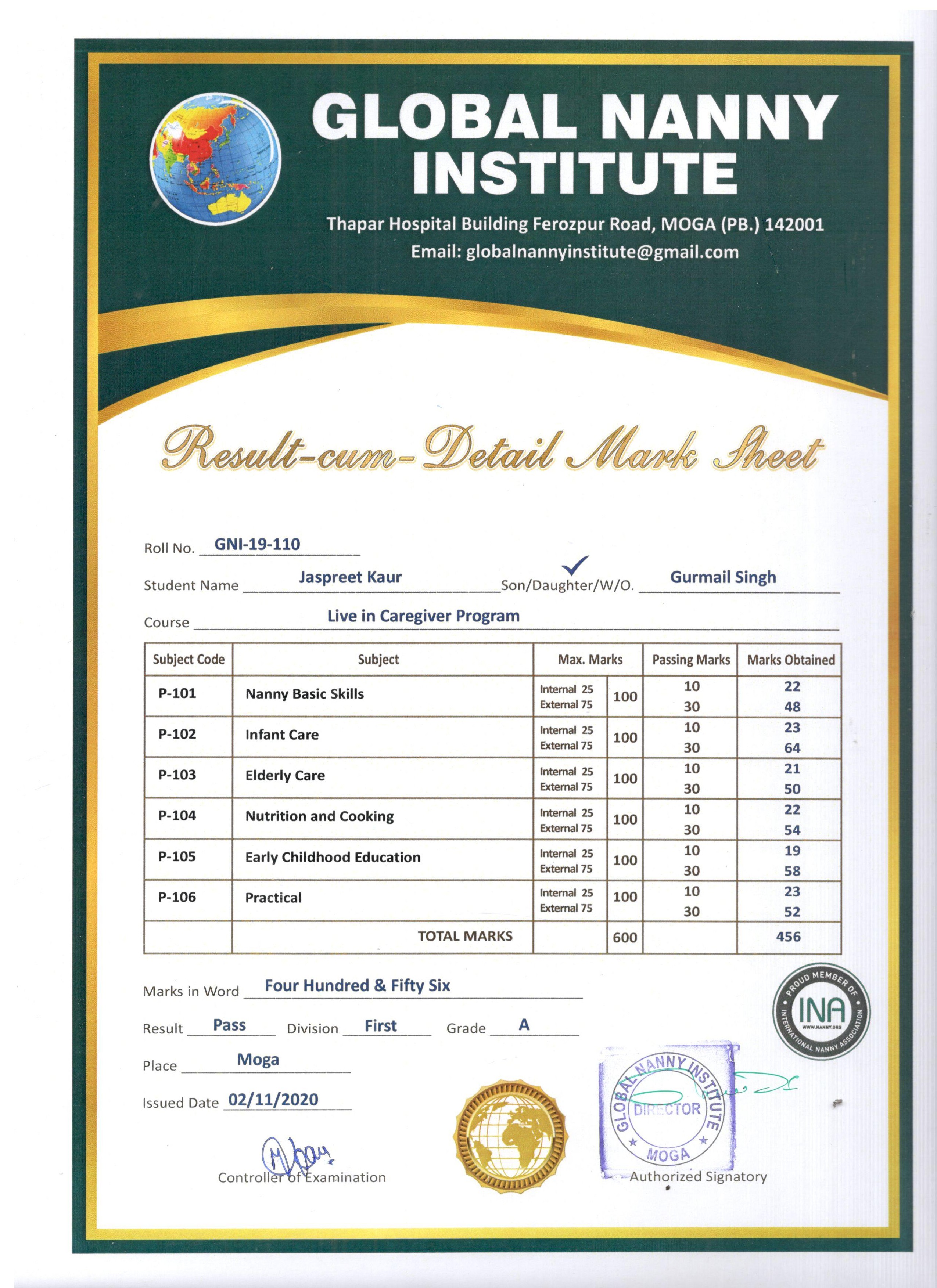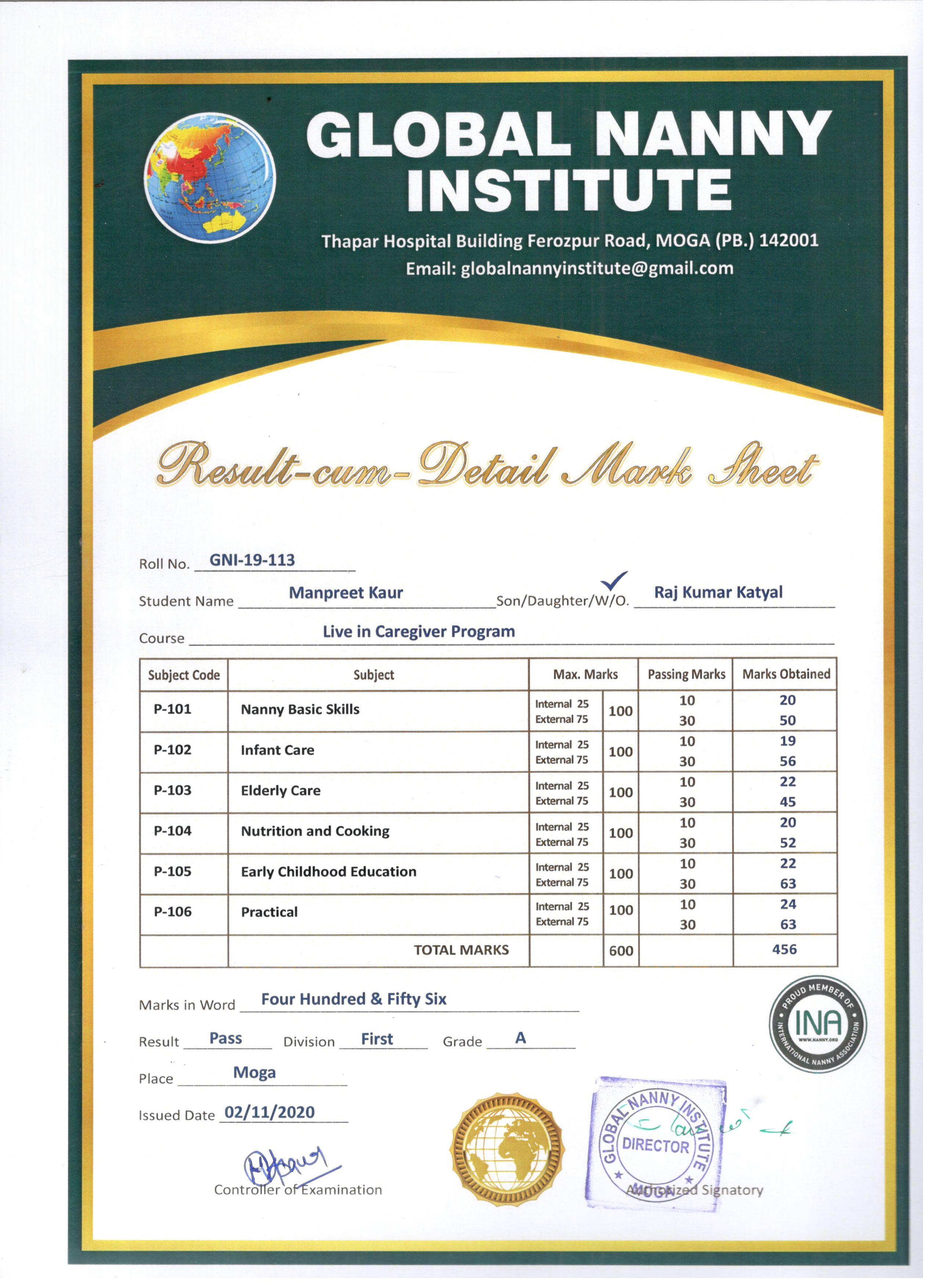 Prabhjot Kaur (Certification Date : 02-11-2020)