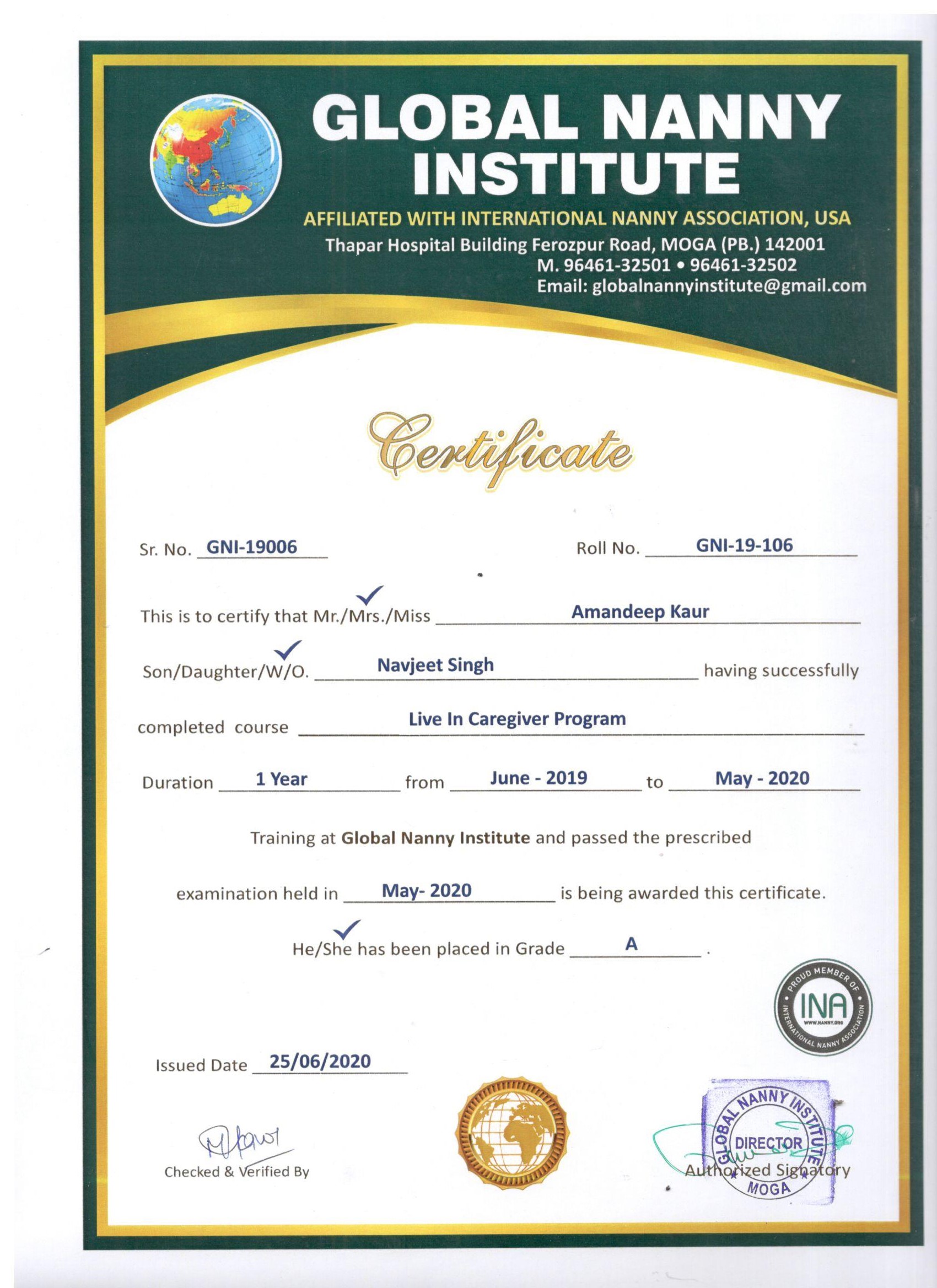 Amandeep Kaur (Certification Date : 30-10-2020)