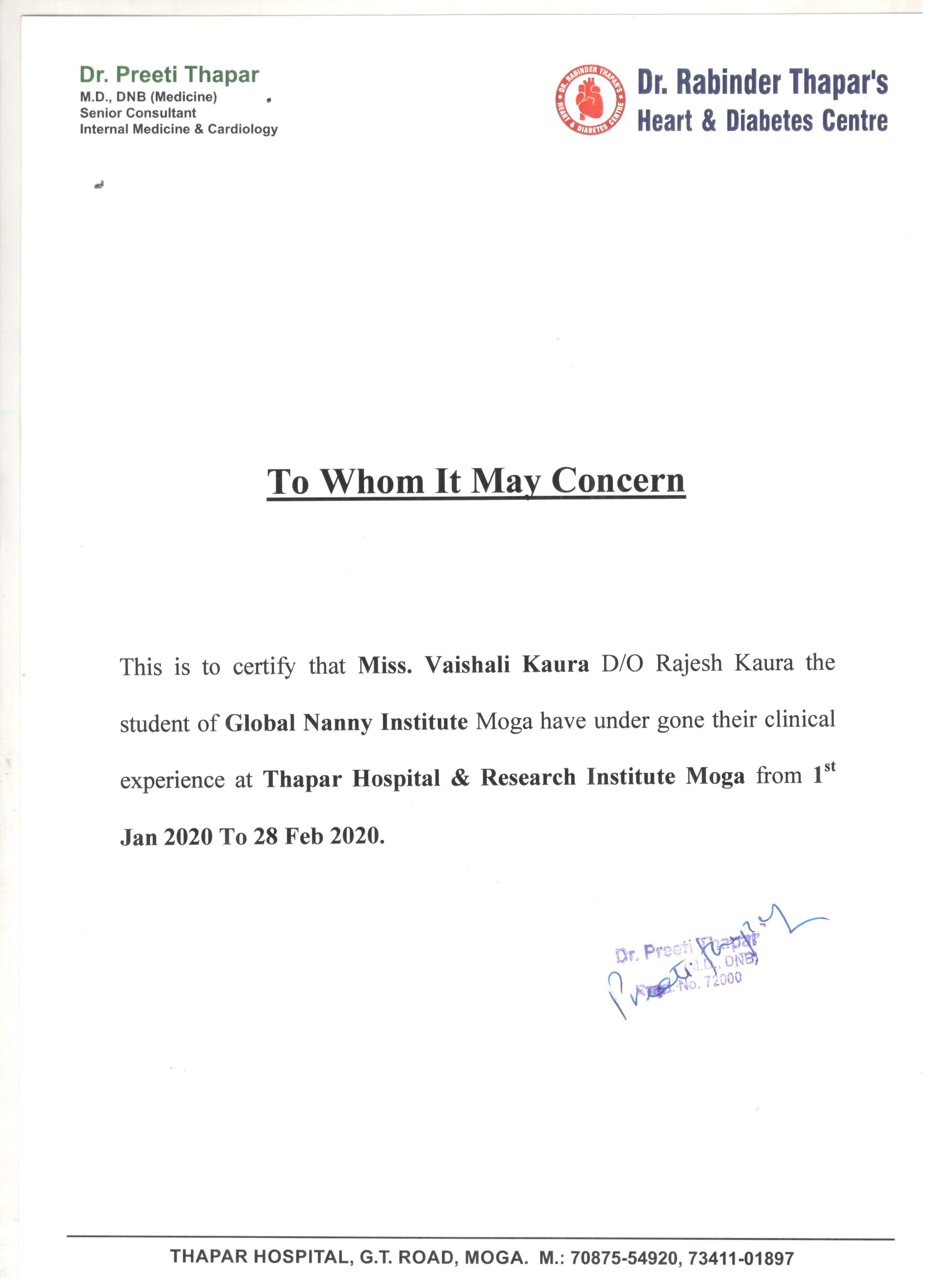 Vaishali Kaura (Certification Date : 02-11-2020)