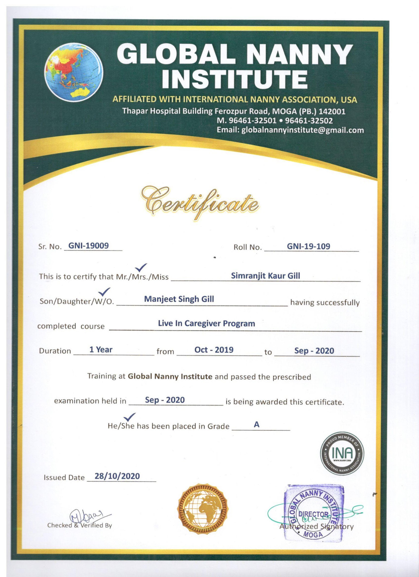 Simranjit Kaur (Certification Date : 30-10-2020)