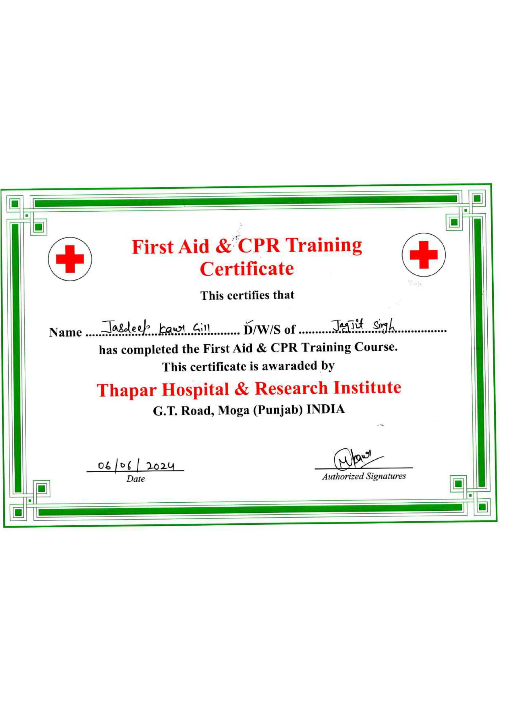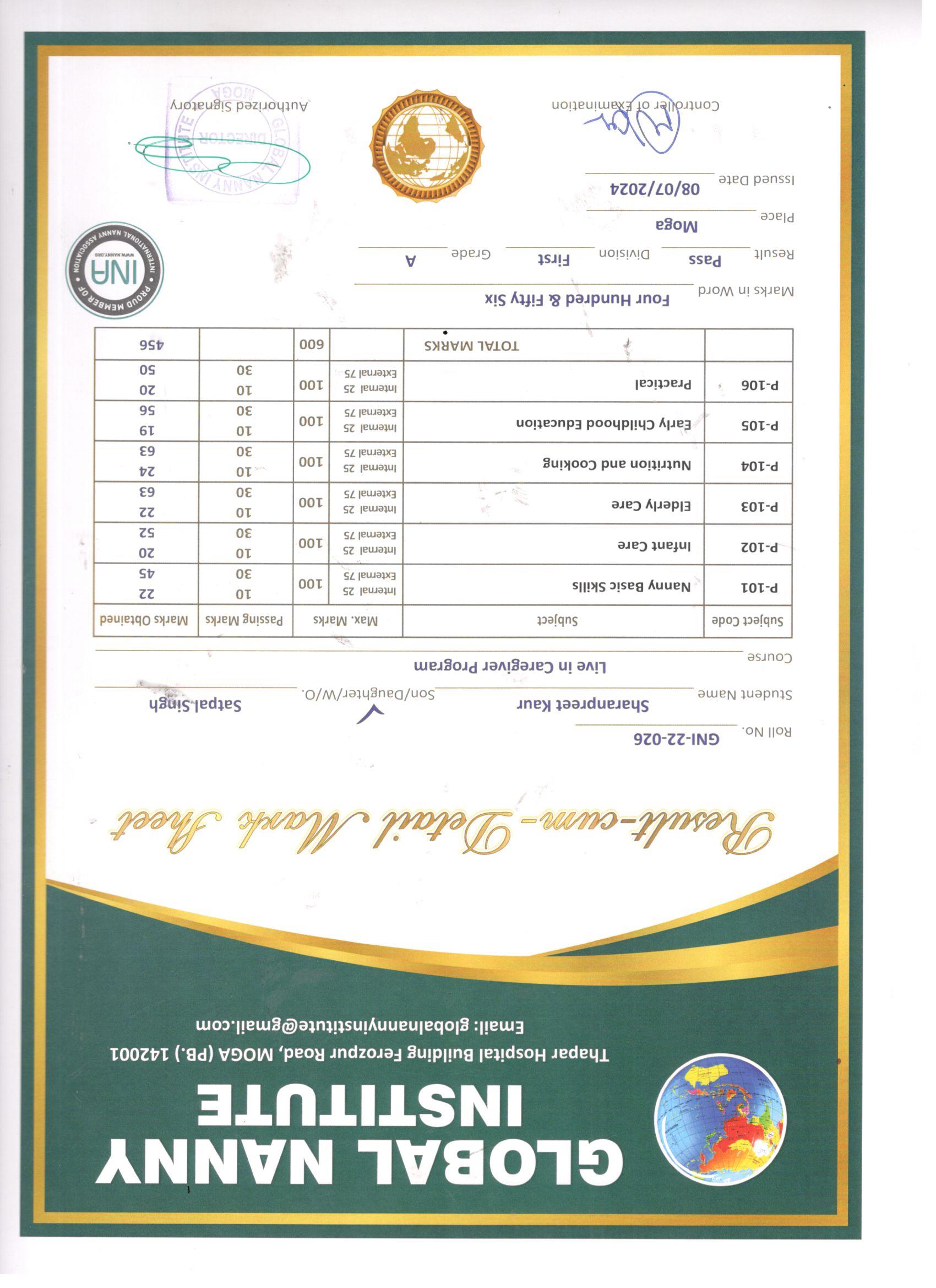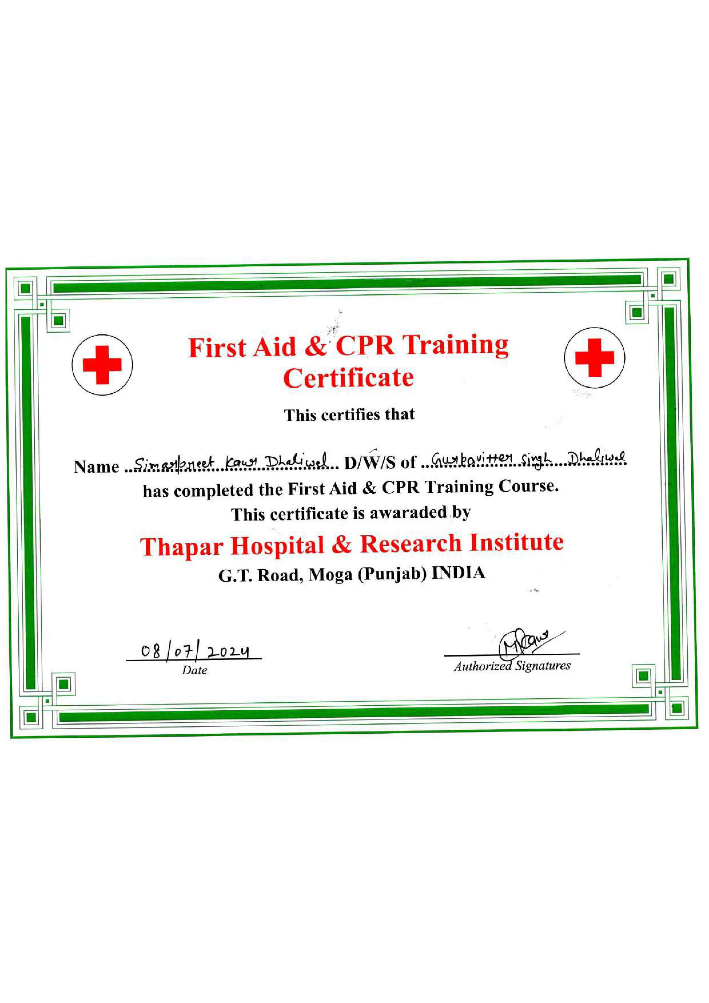 Sharanpreet Kaur D/O Satpal Singh (Certification Date : 08-07-2024)