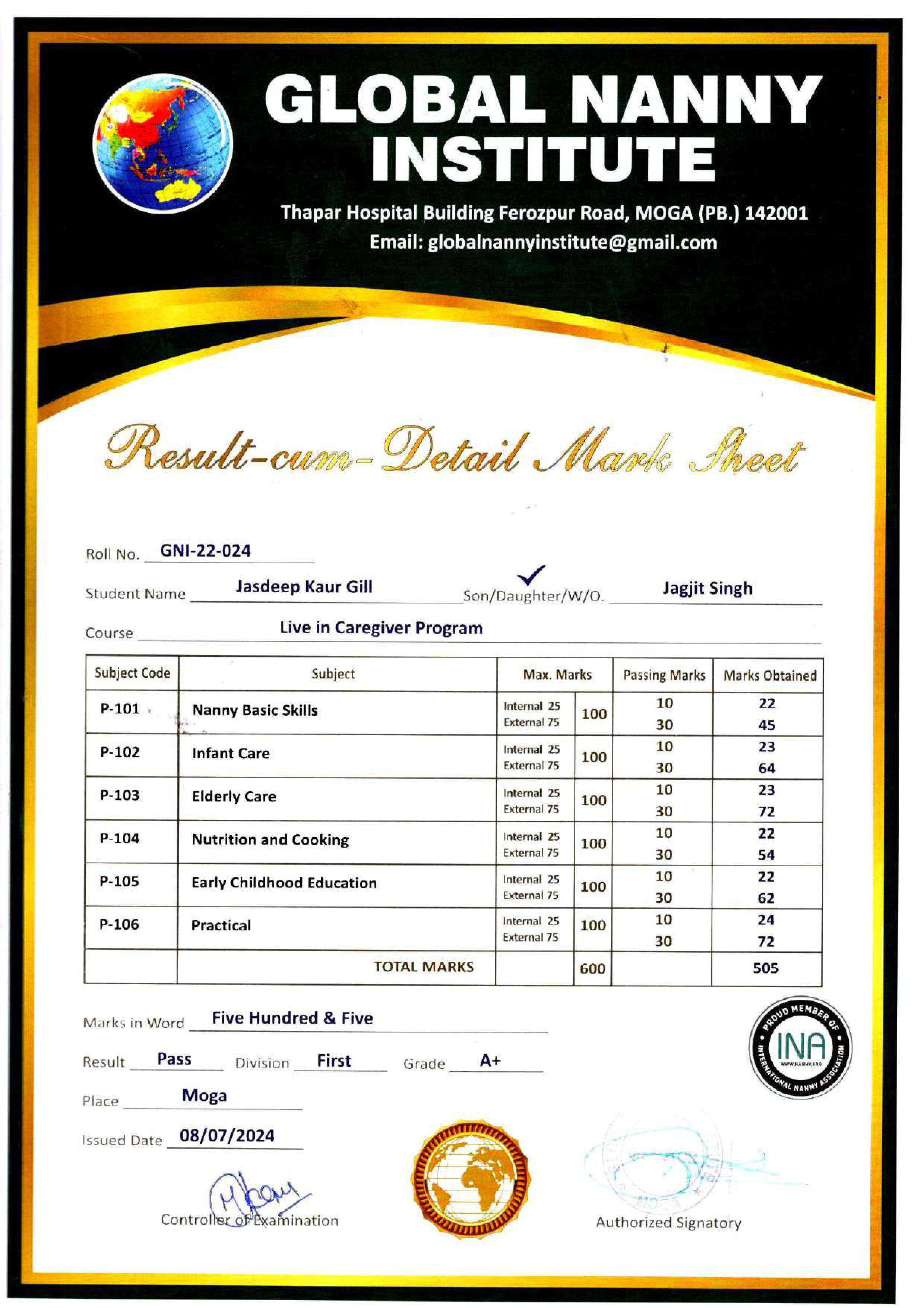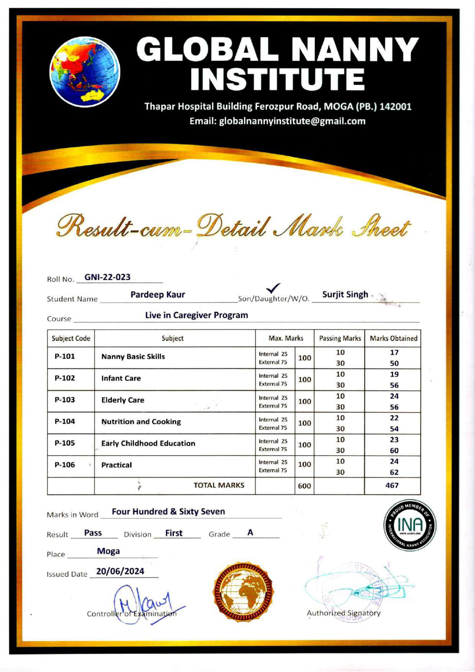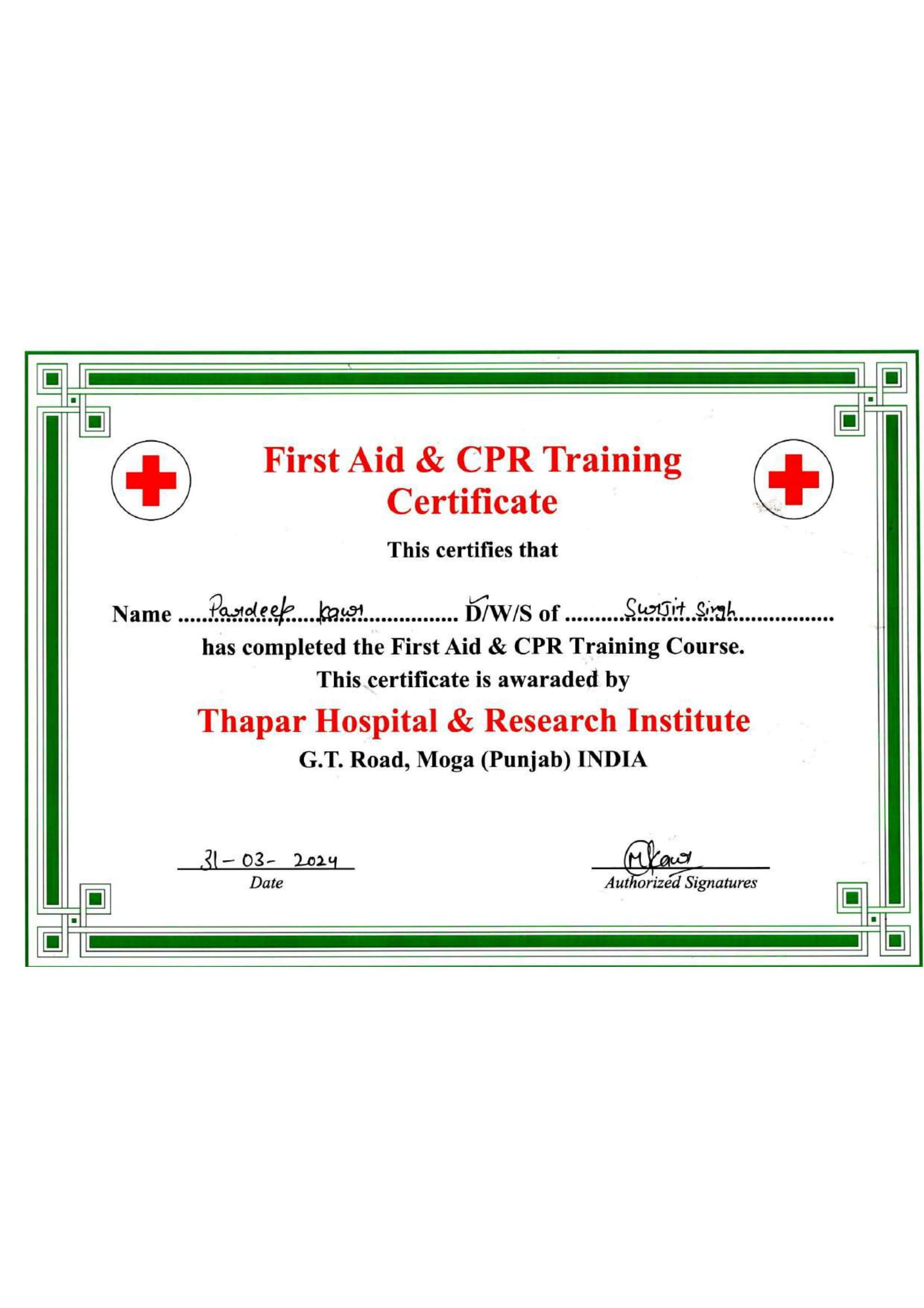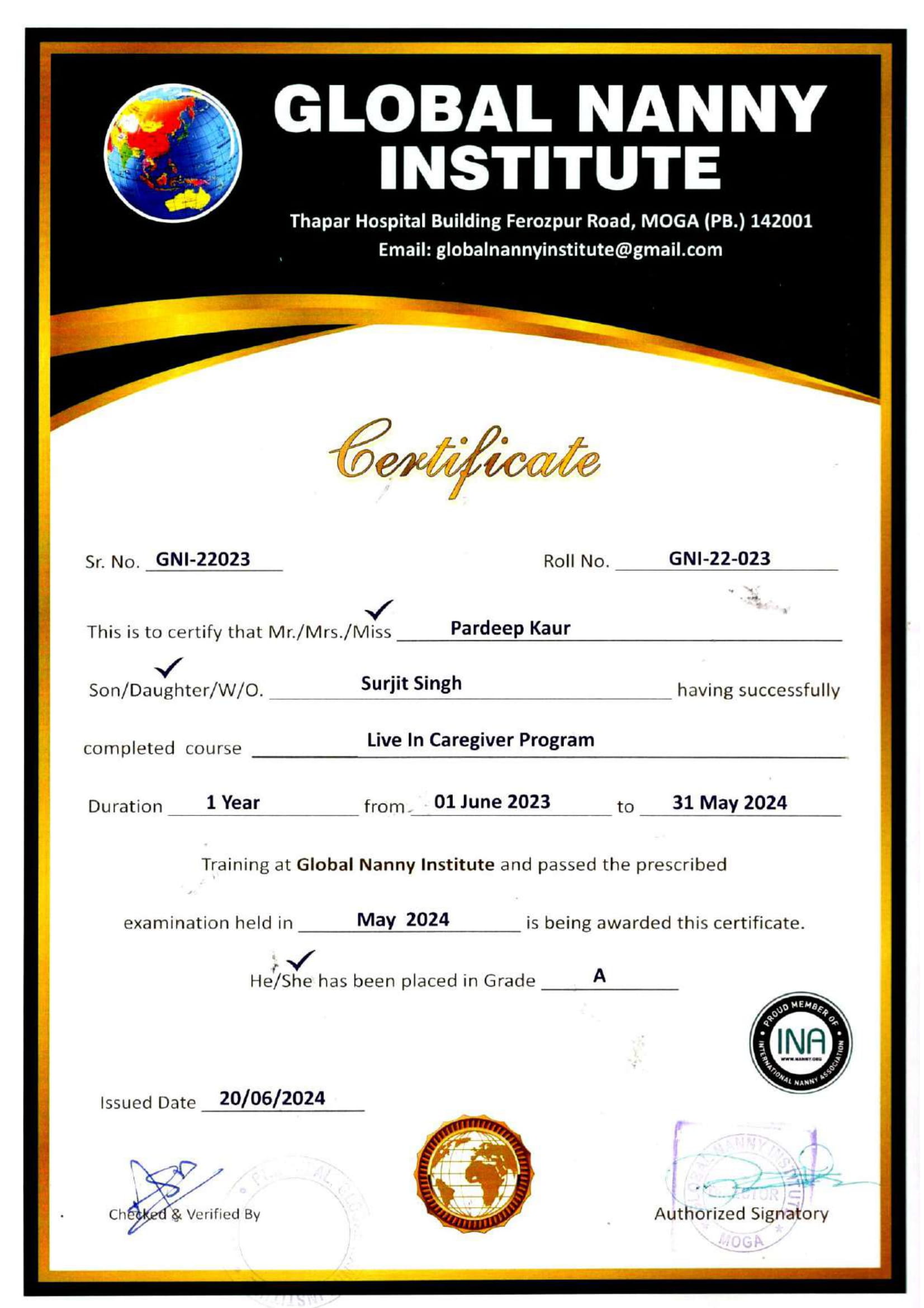 Pardeep Kaur Surjit Singh (Certification Date : 26-06-2024)