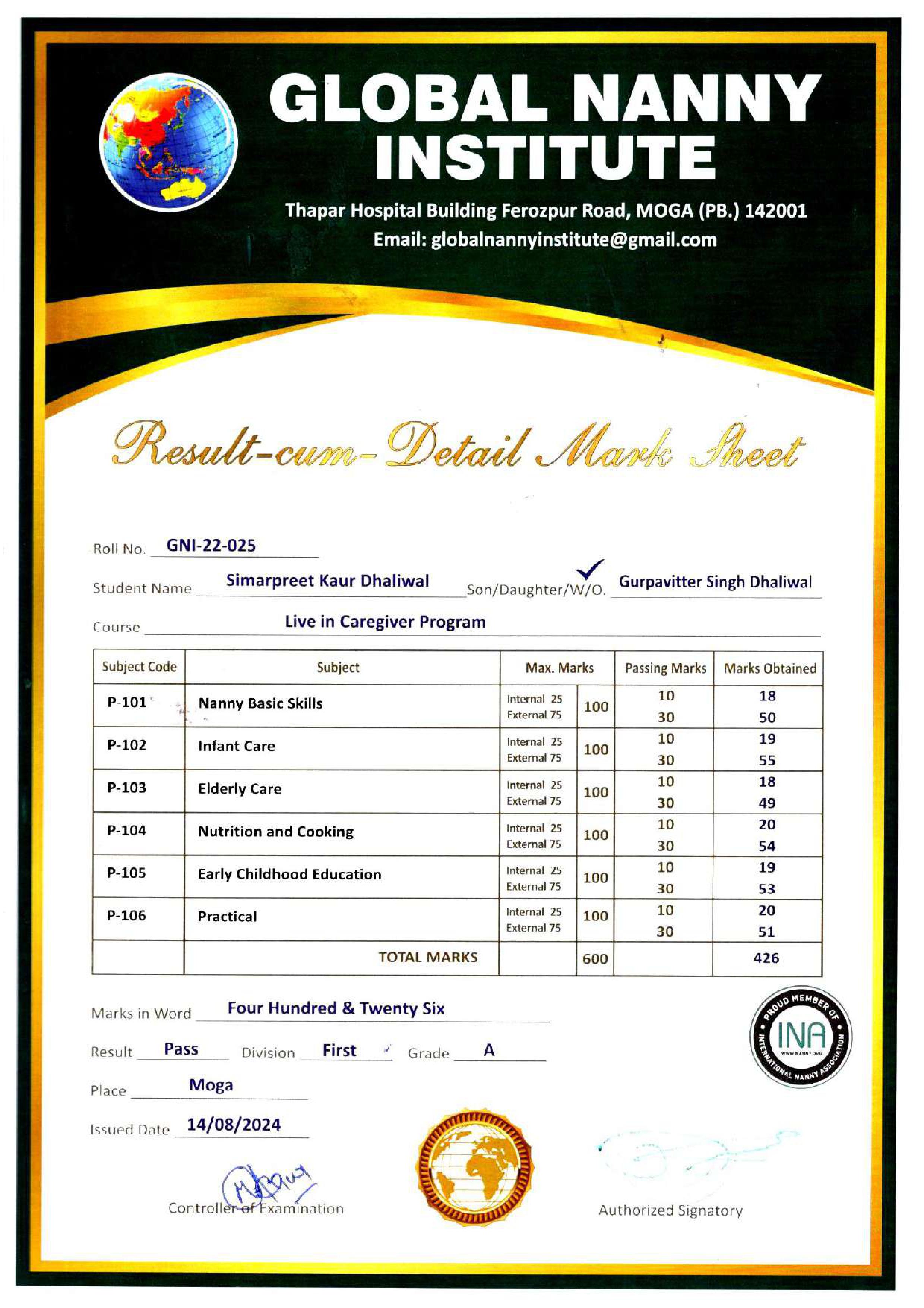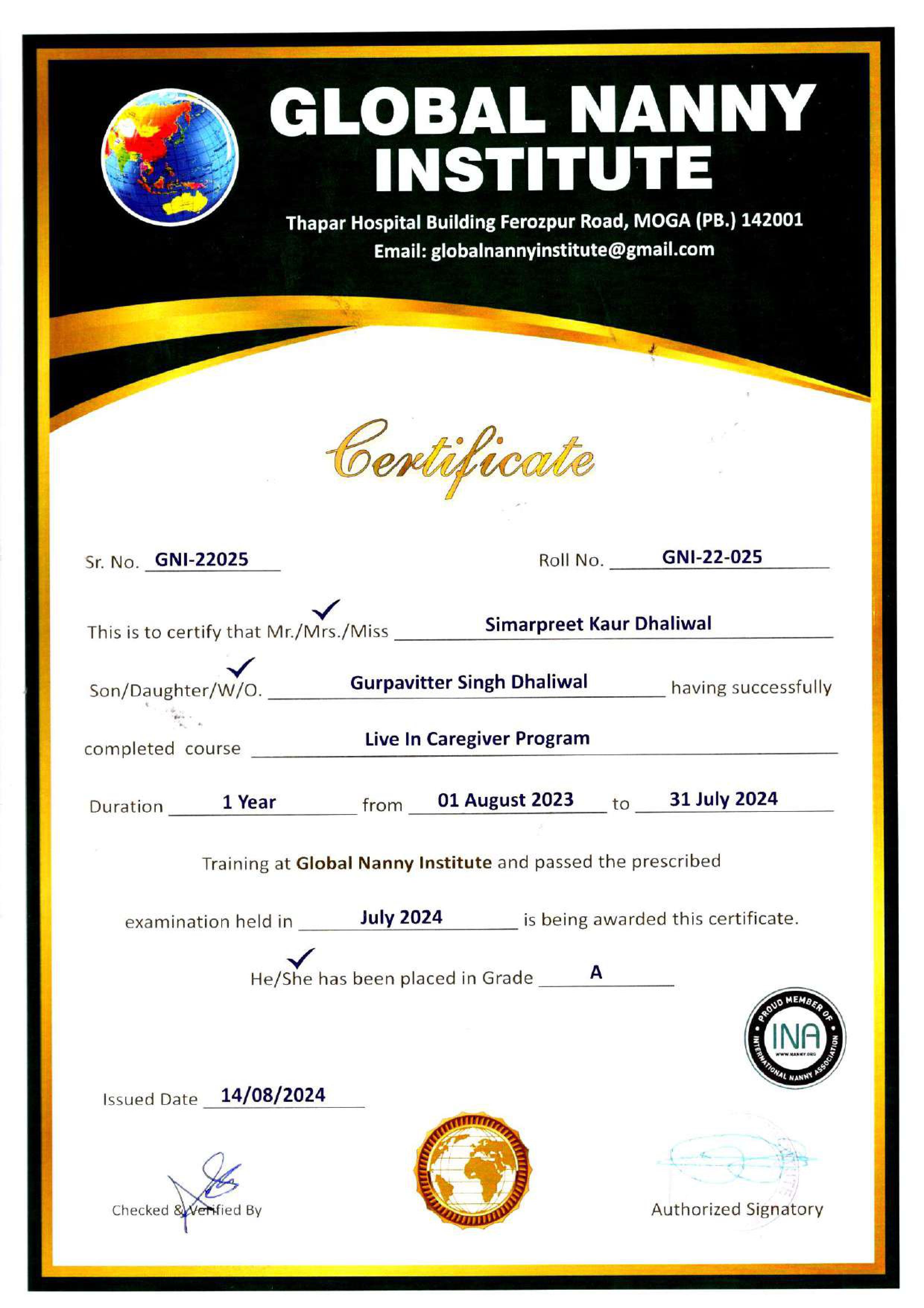 Simarpreet Kaur Dhaliwal (Certification Date : 14-08-2024)