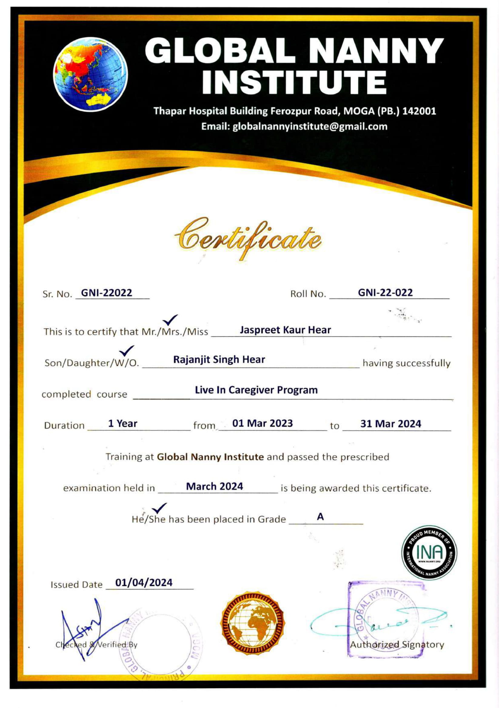Jaspreet Kaur Hear (Certification Date : 01-04-2024)